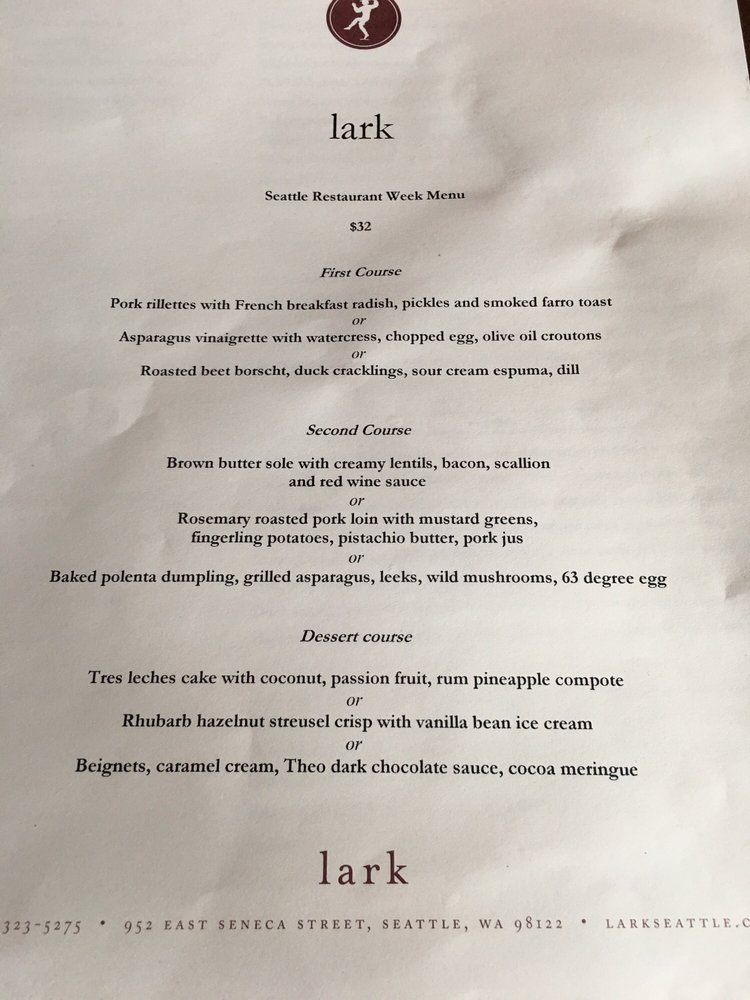 Welcome to Lark Restaurant, a captivating New American dining experience located in the heart of Seattle. Nestled at 952 E Seneca St, this establishment is renowned for its innovative yet approachable menu, which elegantly highlights game meats and seasonal ingredients.